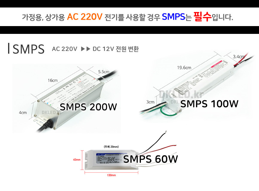 방수 LED바에는 방수 SMPS를 권장합니다.