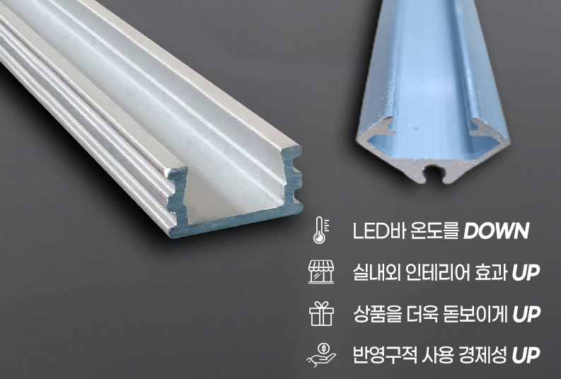 LED바 주문 제작에 사용되는 방열판과 아크릴 커버 종류