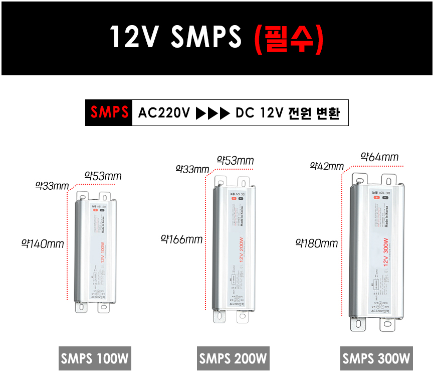 SMPS연결 시 적색선은 '+'에 연결
