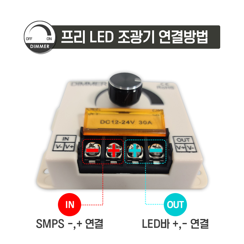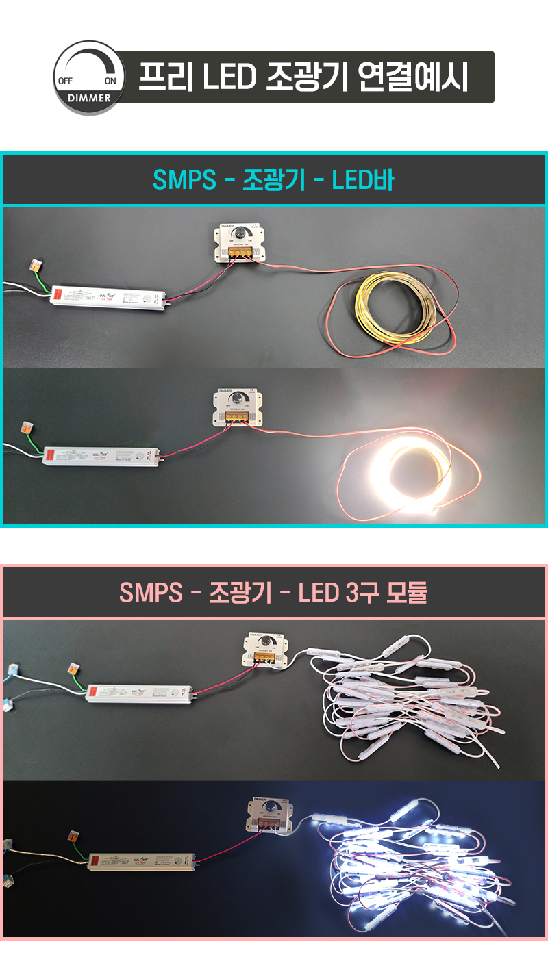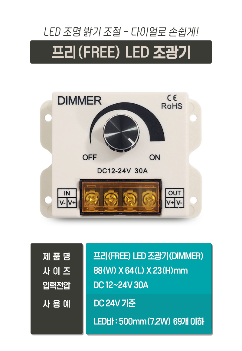 프리 조광기는 DC 12V, 24V LED바 또는 3구 LED모듈에 연결해서 빛 밝기 조절이 가능한 디밍 L...