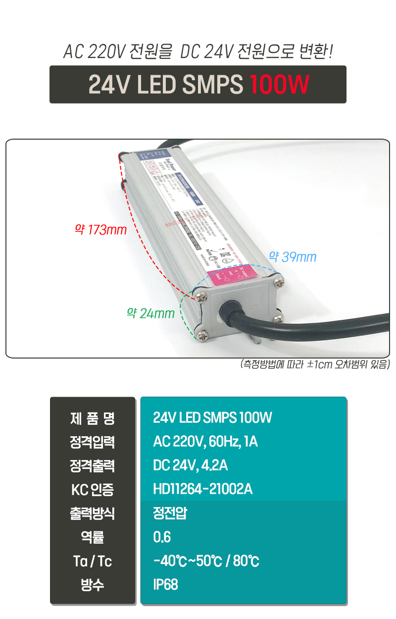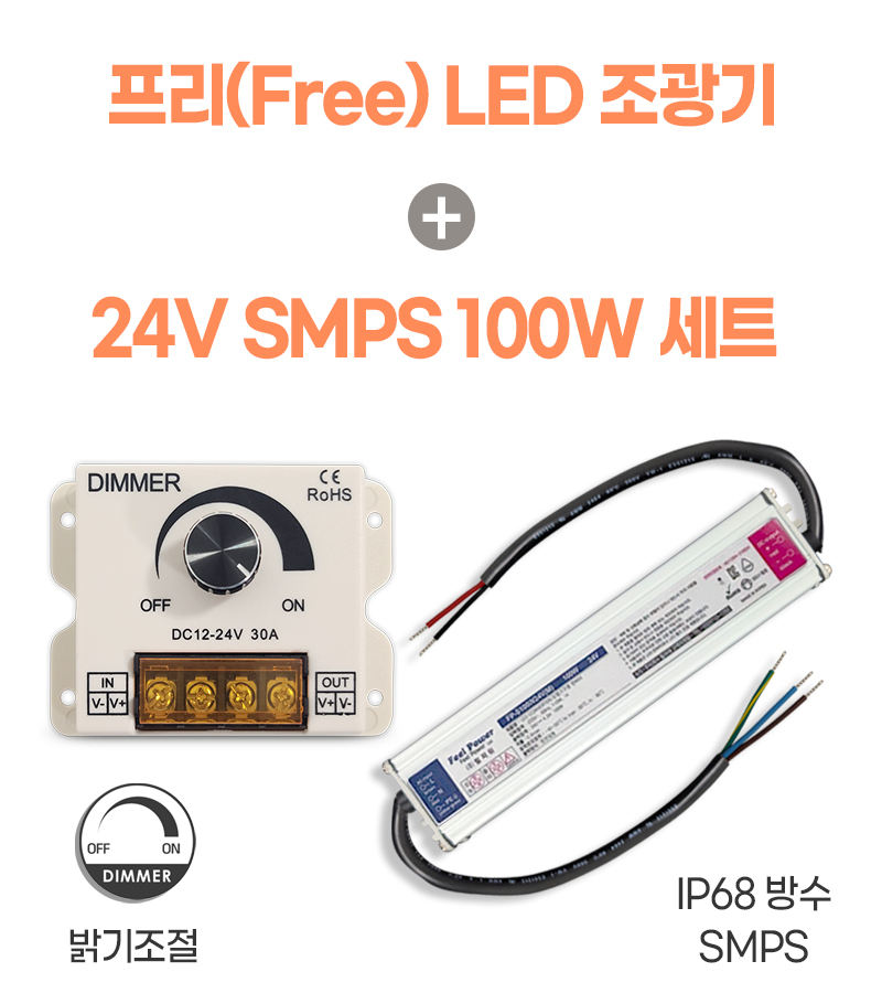 12V 24V LED바 밝기조절 디밍 조광기 SMPS 100W 세트