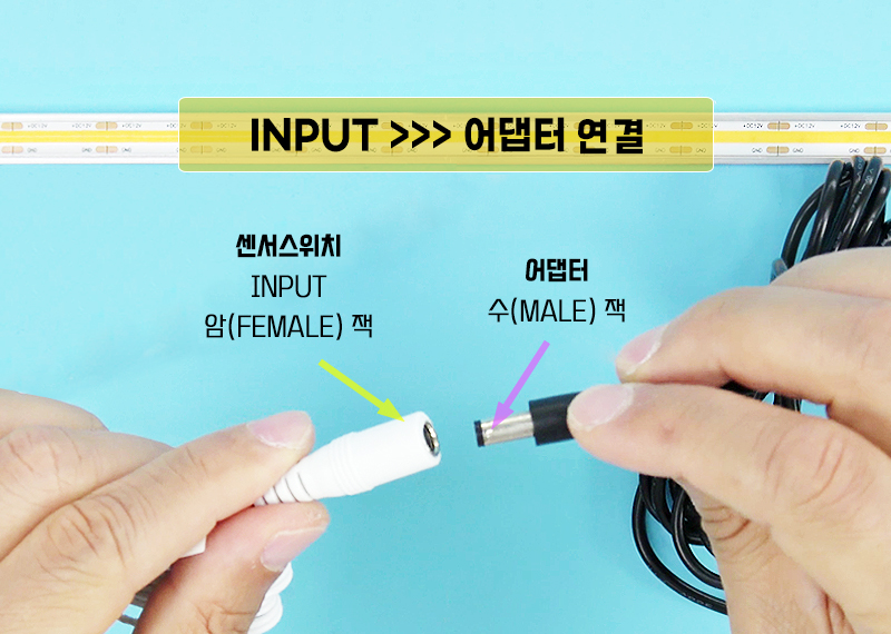 LED바와 어댑터에 연결하여