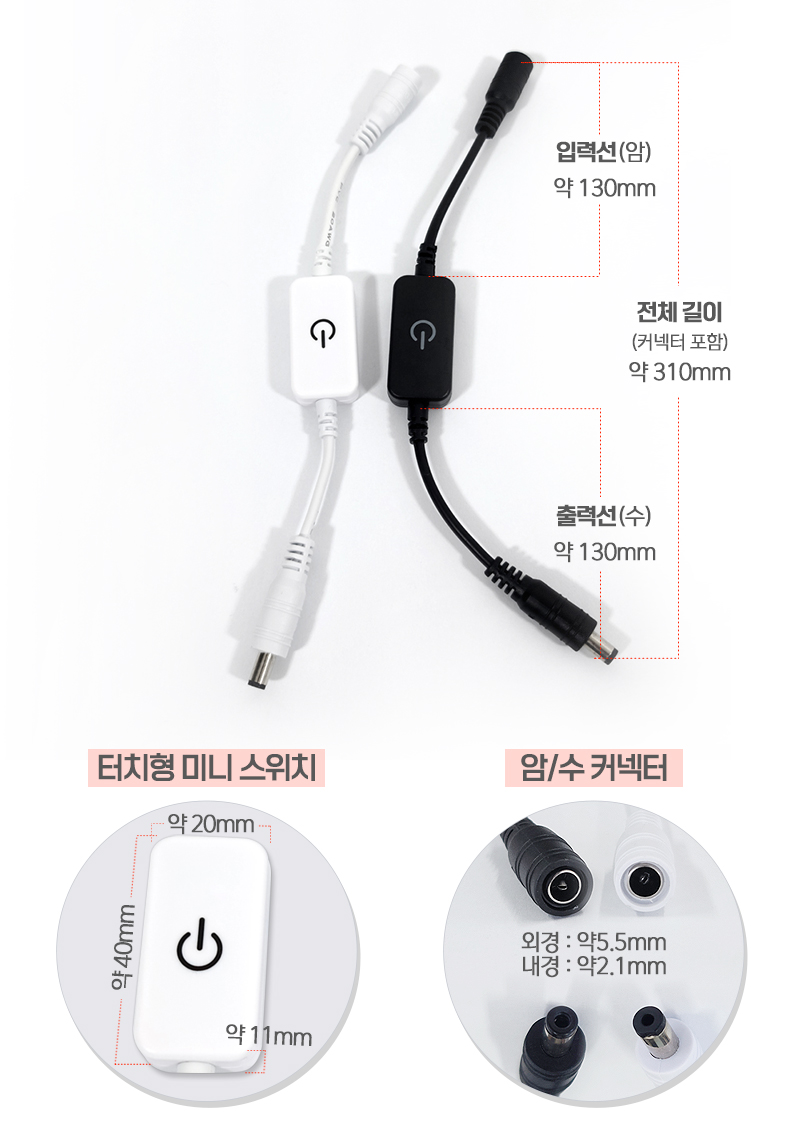LED조명은 5.5파이 암 잭이