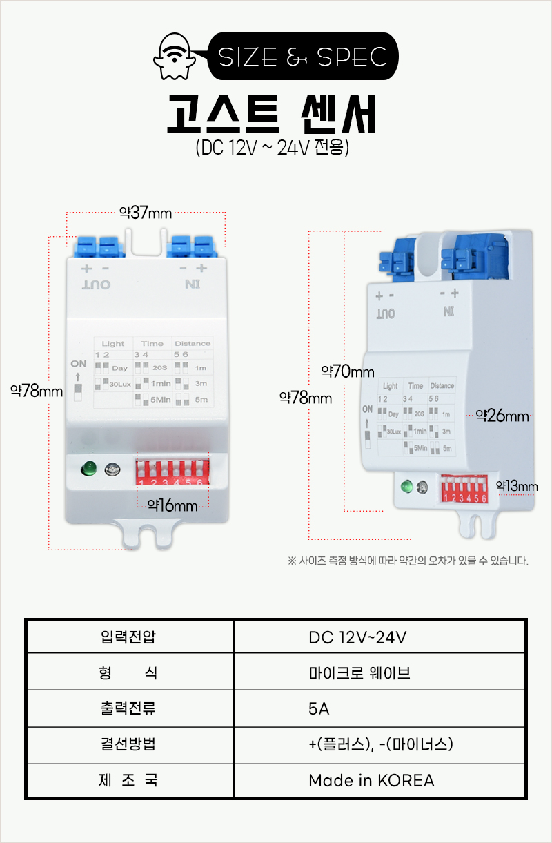 12V 24V DC센서 움직임 동작 감지 고스트센서
