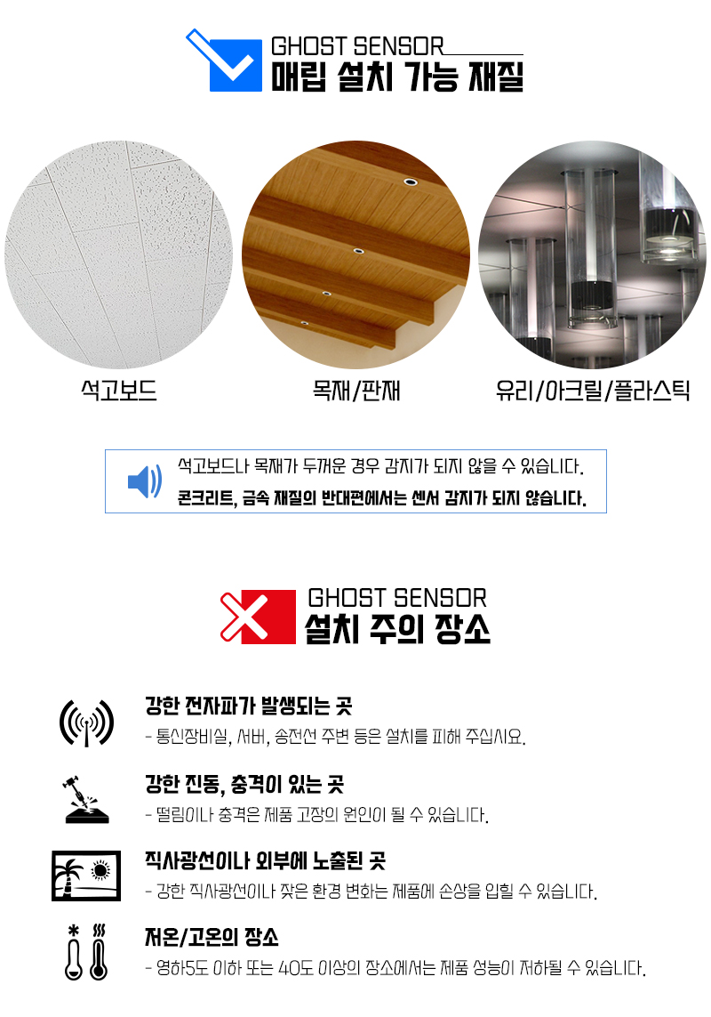 설치 가능 재질 및 설치 시 주의 장소