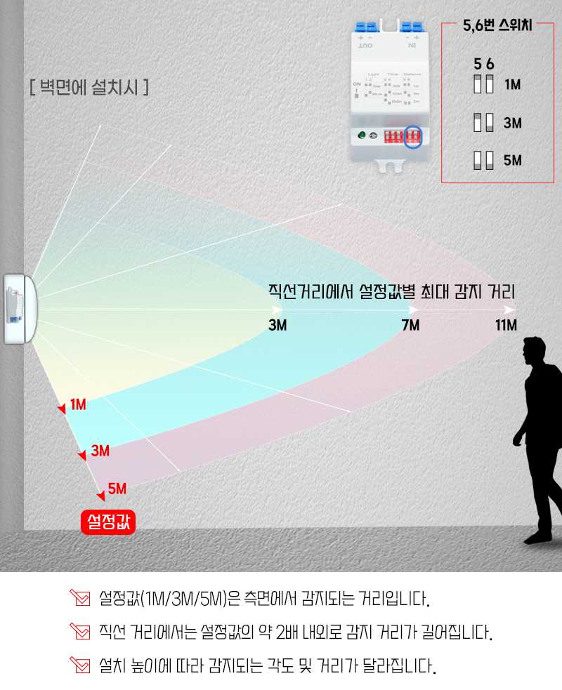 감지 거리 및 각도를 3단계로