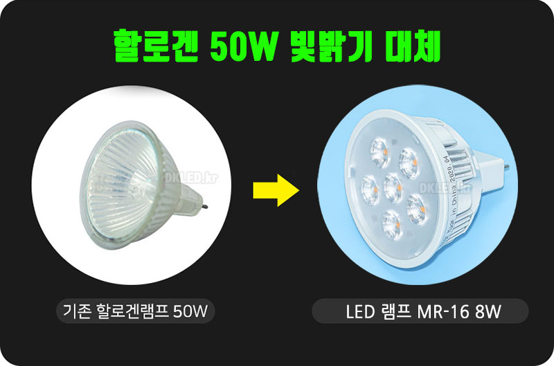 LED할로겐 MR16 8W 할로겐전구 50W 교체