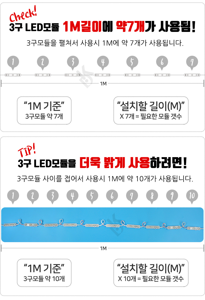 3구 모듈은 1M기준 약 7개