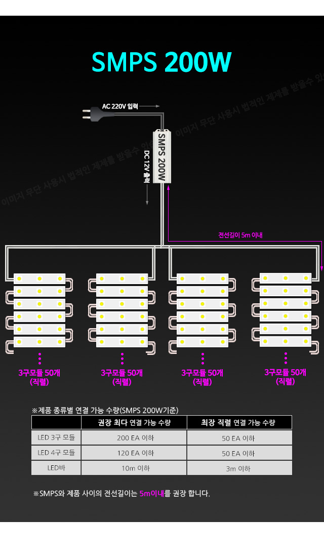 SMPS와 3구 LED모듈을 연결하면