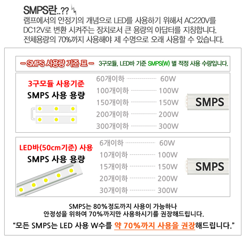 SMPS 허용용량의 70%까지만 사용을 하세요