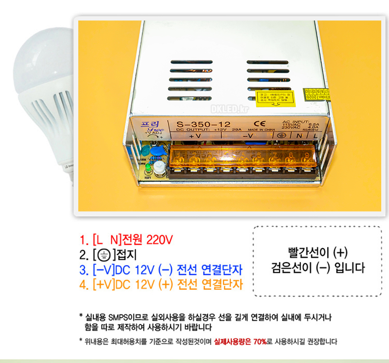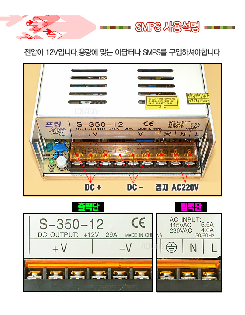 LED바 3구LED모듈 연결 LED SMPS 12V 350W 비방수형