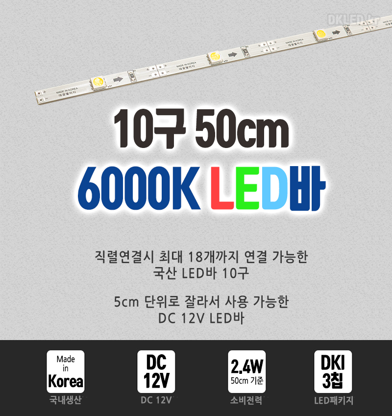 12V LED바 50cm 10구 6000K 저전력 엘이디바