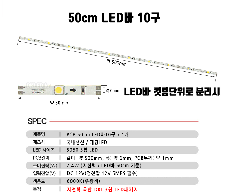 PCB LED바 50cm 1개 SPEC