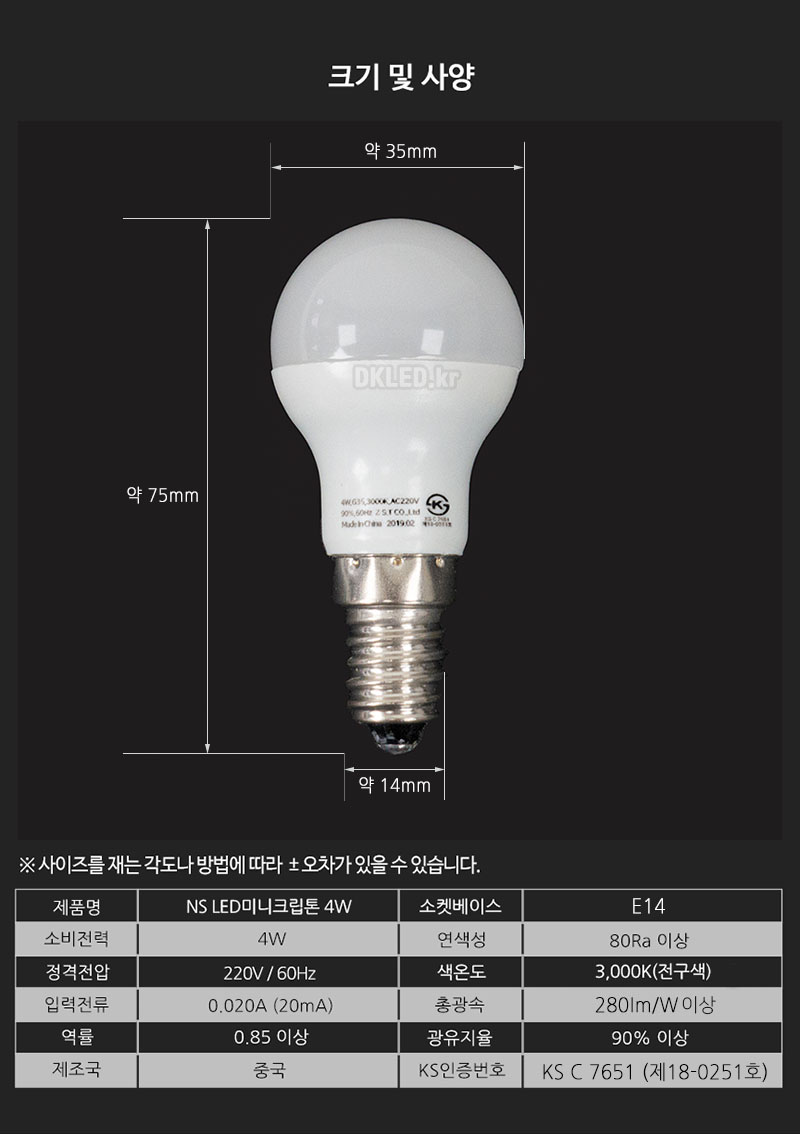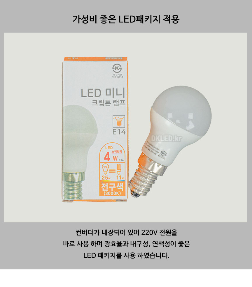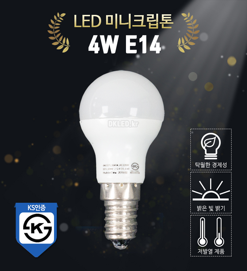 LED전구 E14 미니크립톤 4W KS 엘이디전구 전구색 주광색 교체