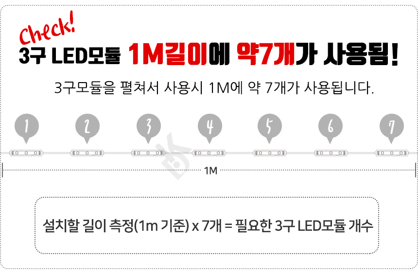 설치해야 될 길이(M) x 7개 = 구입할 모듈 갯수로