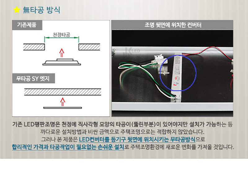 좁은 공간에도 설치가 가능한 가정용 LED조명입니다.