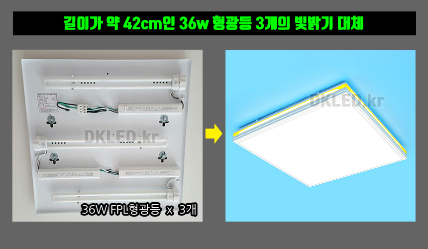 36W 형광등 3개 또는 4개 빛밝기 대체