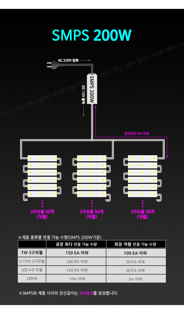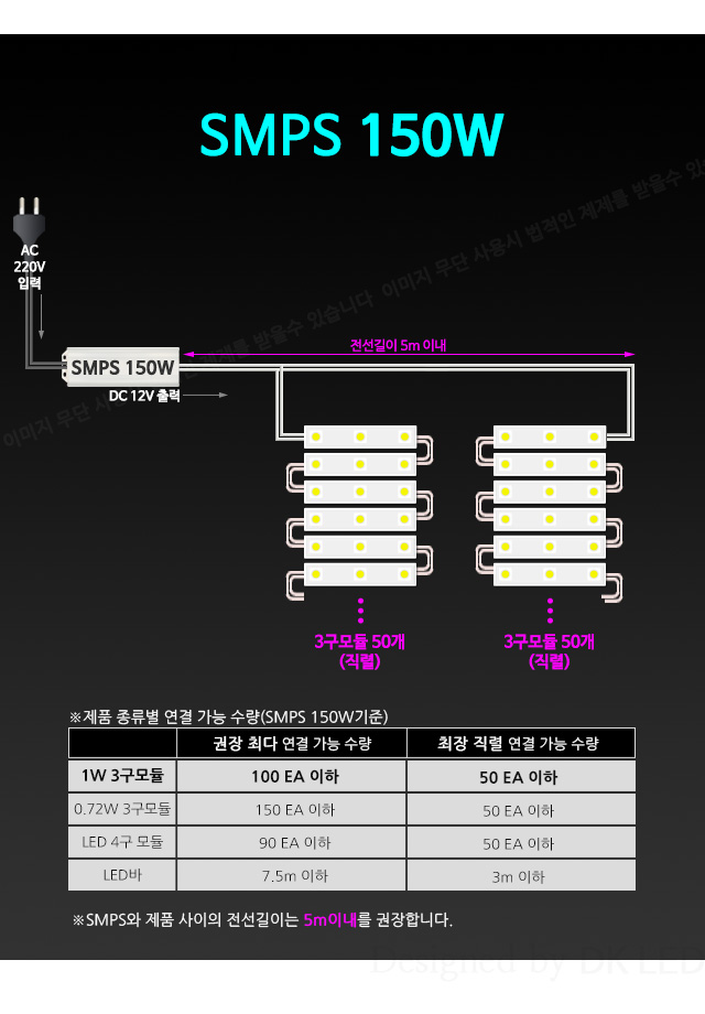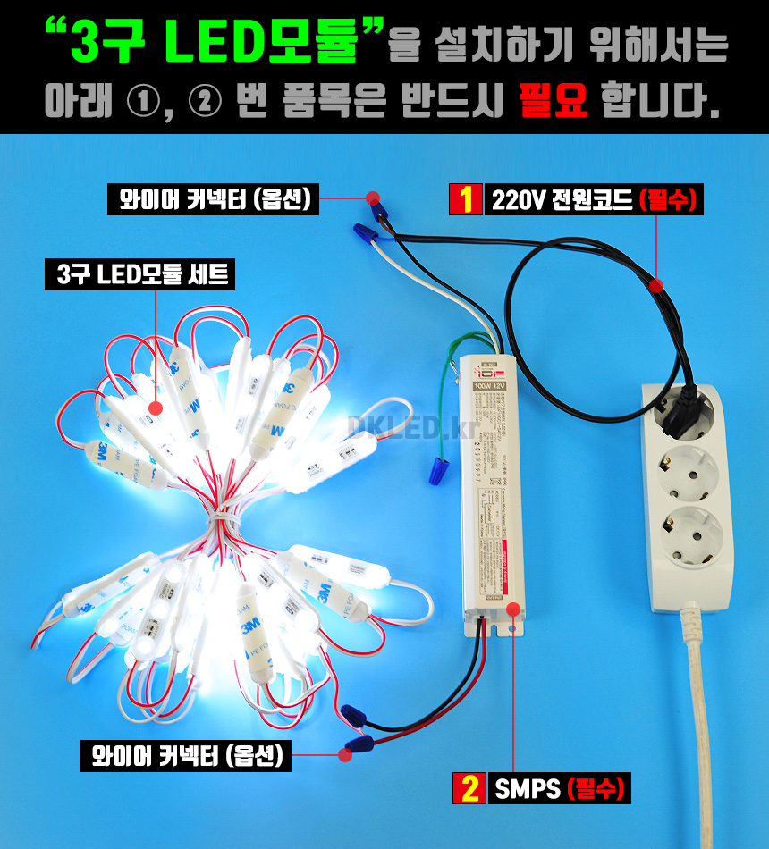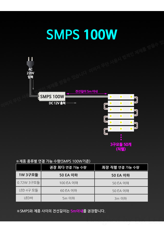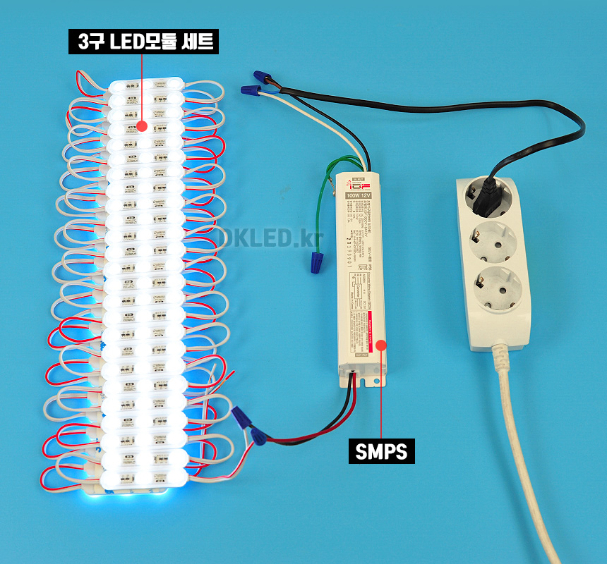 ▲ 실제 SMPS와 3구 LED모듈 50개를