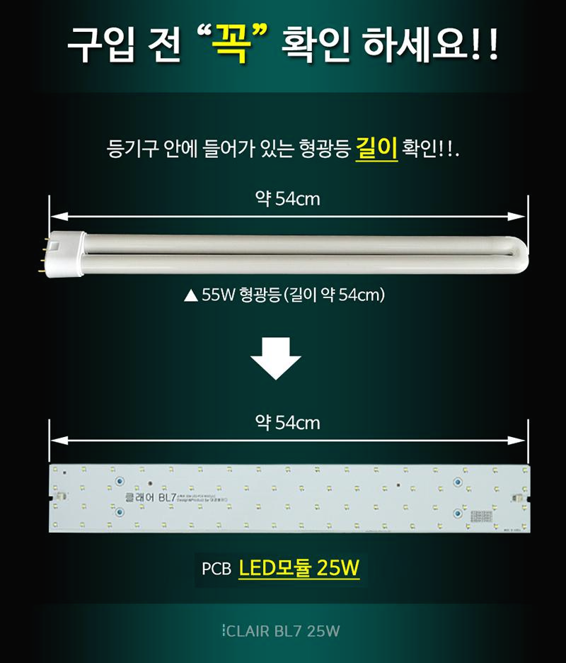 주방등 욕실등 거실등 리폼 LED모듈 클래어 BL7 25W