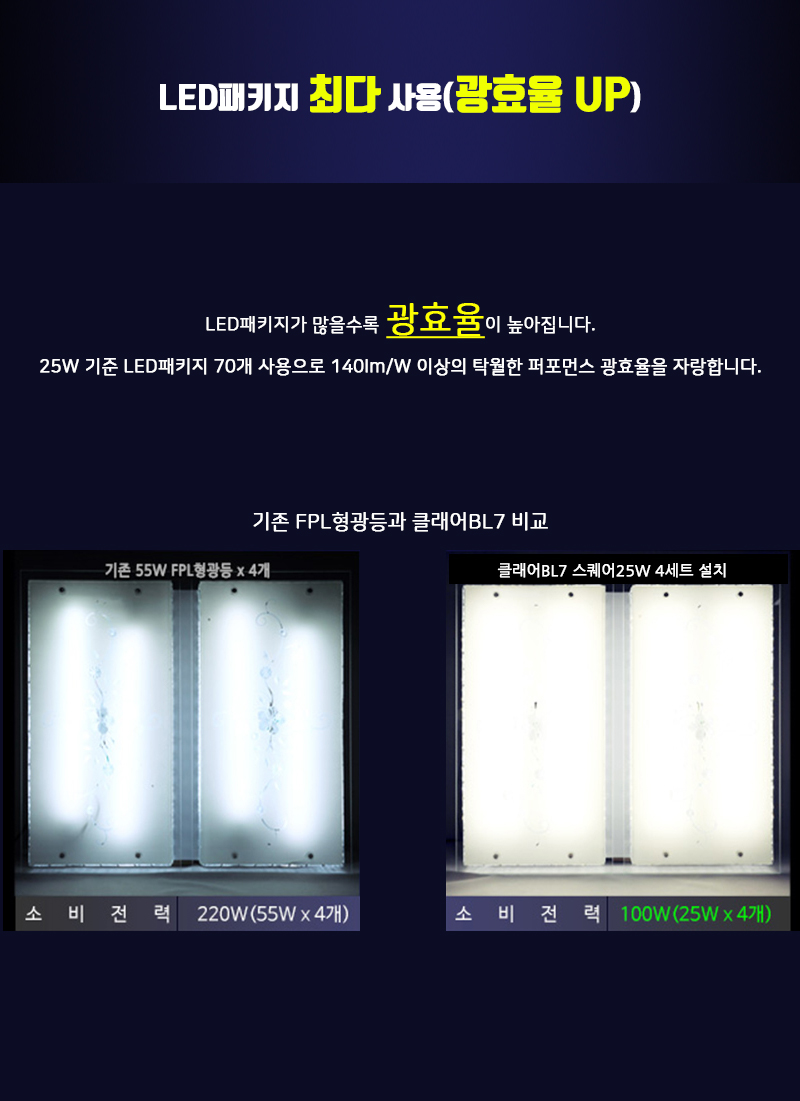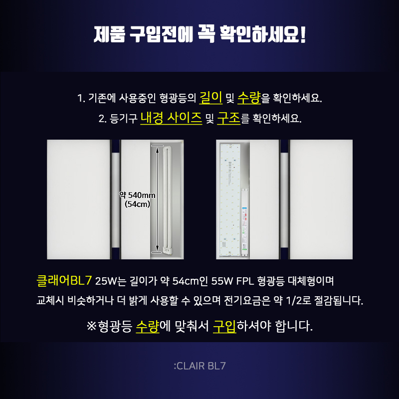 55W 형광등을 클래어 BL7 25W로 교체시