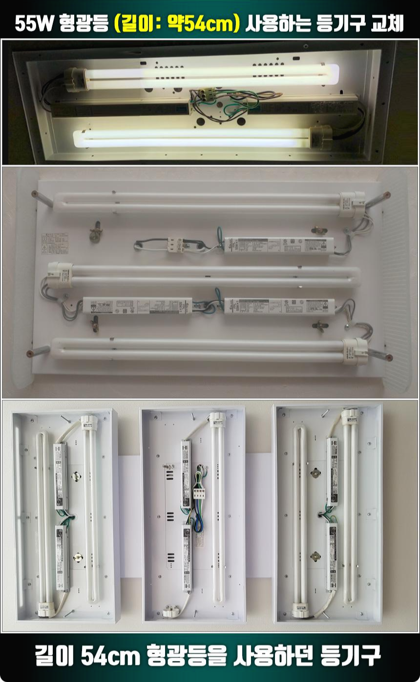 주방등, 거실등 등기구에 55W 형광등 2개를 사용하는데