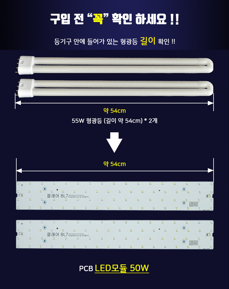 55W 형광등을 클래어 BL7 50W로 교체시