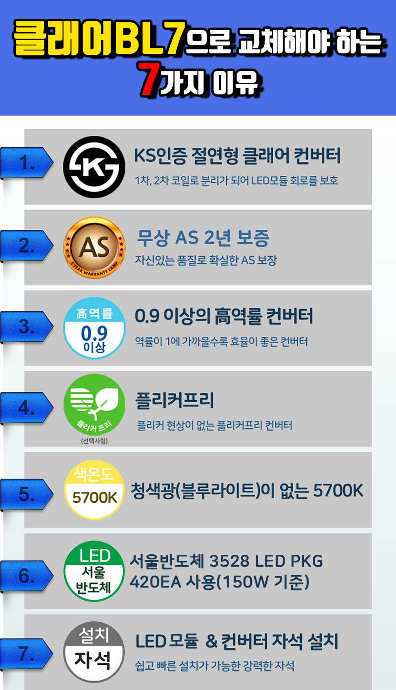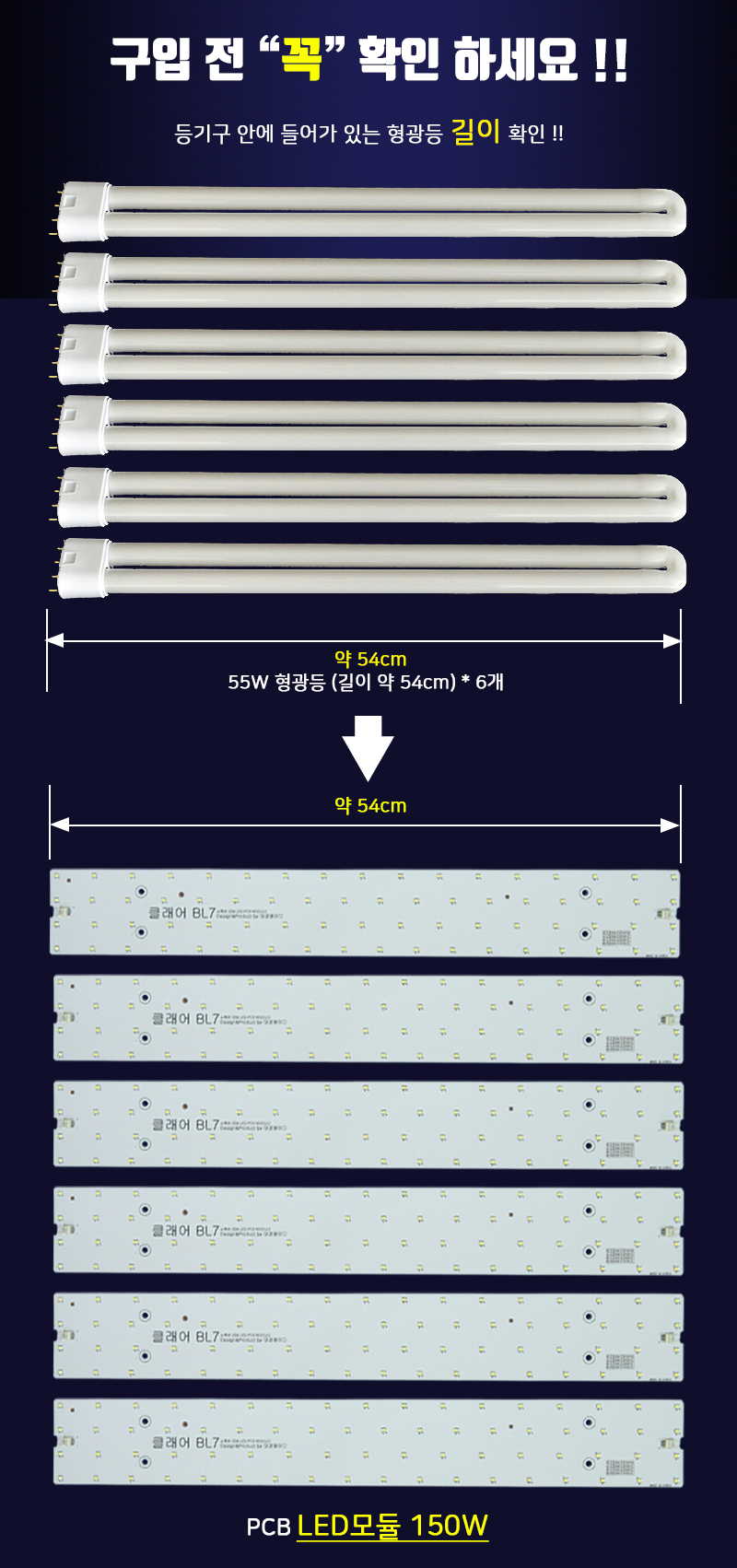 거실LED모듈 150W 클래어 BL7 플리커프리 LED기판 세트