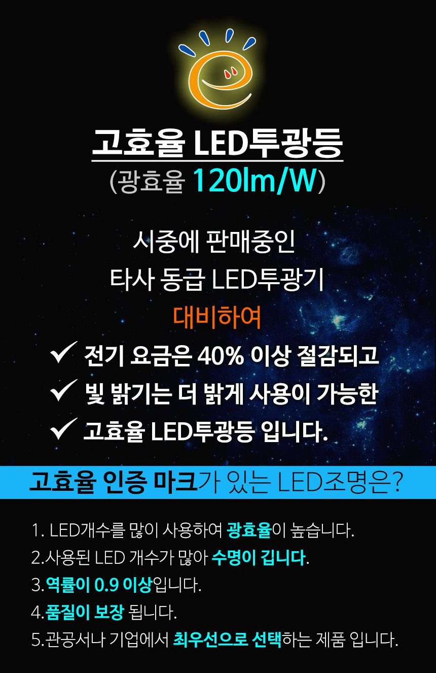 고효율 인증이 있는 LED투광기를 선택 하세요