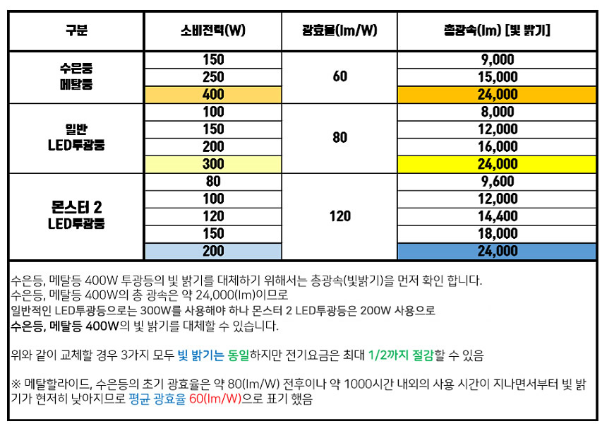 메탈등 400W를 대체 할 수 있는